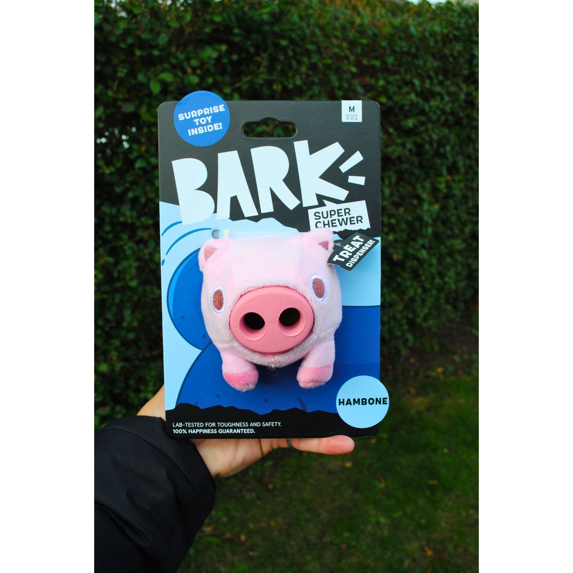 This durable pig dog toy is designed for Super Chewers who love a challenge! Underneath Hambone’s plush layer is an all-natural rubber core with a treat dispensing snout. It’s two layers of play that Super Chewers will go hog wild over!