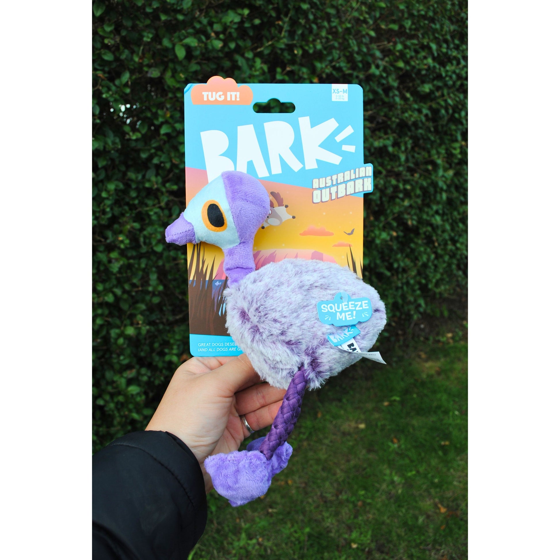 Emus can sprint up to 48 km/h—can your pup keep up? If they grab onto Adelaide Emu’s t-shirt-rope legs, they just might! This flightless bird is about to take flight—straight into your pup’s playtime! With a squeaker, shreddable fluff, and crazy crinkle, this fuzzy beaut is no drongo when it comes to fun. Built for tugging, chewing, and all-around Aussie-inspired mischief, Adelaide Emu is ready to be your dog’s new best mate. FEATURES: BARK Adelaide Emu purple Australian emu ostrich bird plush dog toy XS/S/M Pull-through T-shirt rope for tugs of fun. Made with crazy crinkle and a squeaker for extra excitement. Long & Strong hair for dogs who love to shred. Pull-through T-shirt rope for tugs of fun.